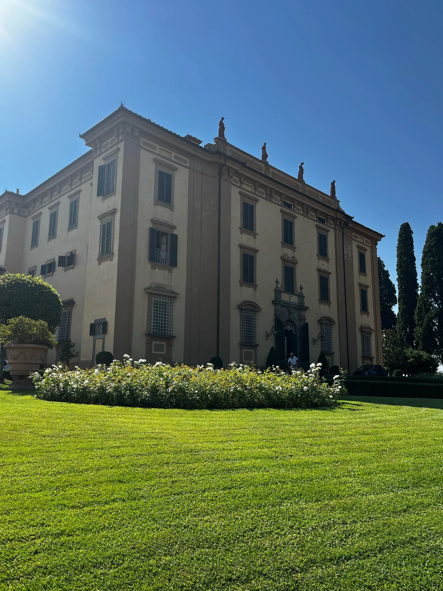 · First stop was at Poggio Torselli; a stunning Italian villa that is still a private residence of the owners family, believe there’s over 60 rooms and only 4 people live there. After a tour through the vineyard, fermentation and aging rooms, we passed through the entryway and garden of the residence to be seated for our tasting. The tasting included 3 wines, a young wine Bizzario, Chianti Classico Annatto (entry level), Chianti Classico Riserva (middle grade) all paired with different cheeses ricotta, pecorino and another really good soft white cheese on a cracker that I can’t remember the name of. Purchased a bottle and olive oil (why is it spicy) to take home with us.