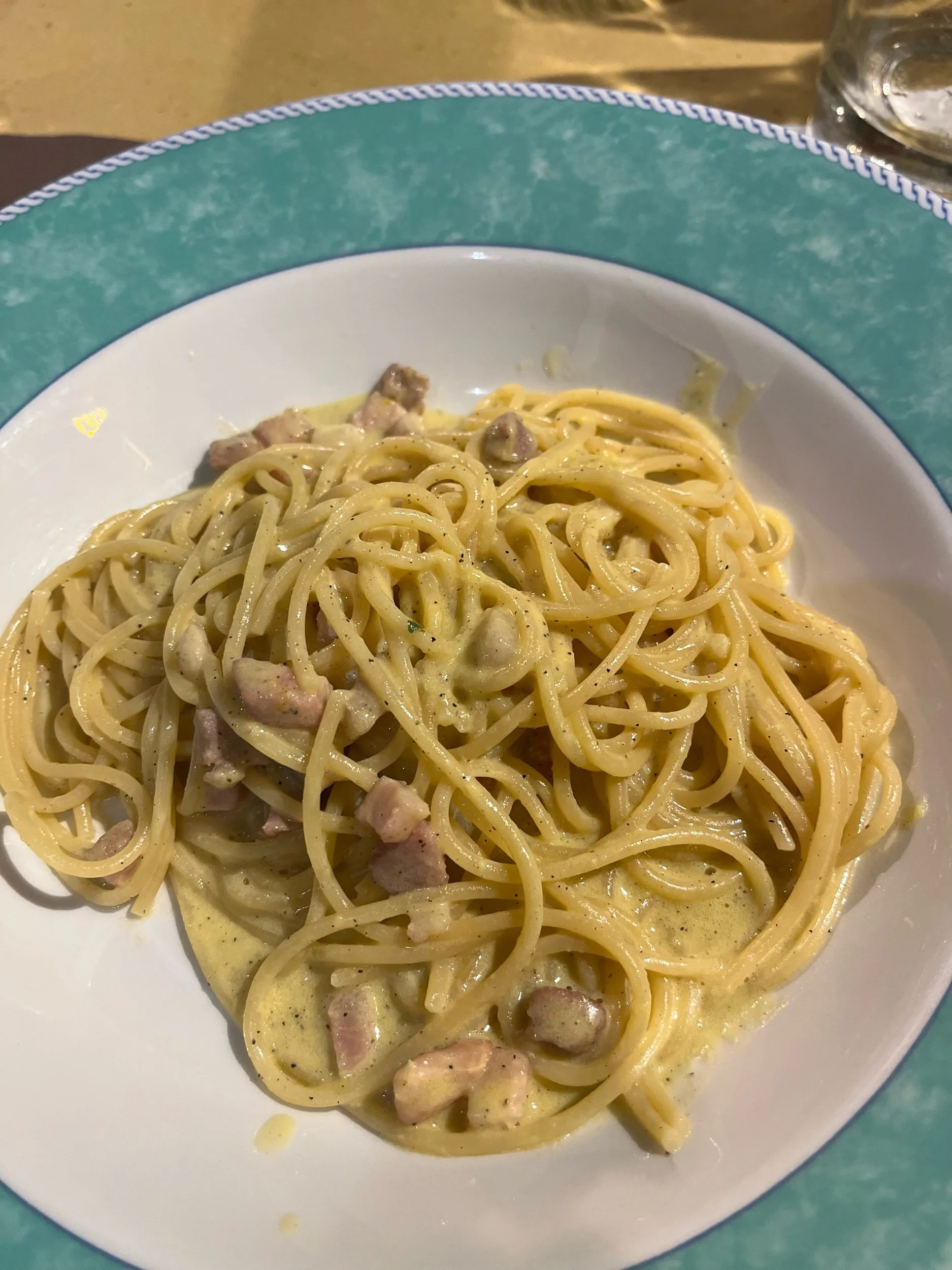 We had no reservations for dinner, initially sat down at i-Tuscani2 but weren’t impressed by menu and prices were much higher than what we were looking for so we continued on. Stumbled across I Ristoranti Tre Merli with a much more laid back atmosphere, outdoor seating and very affordable priced. We weren’t starving so each of us split a spaghetti carbonara, Greek salad, and a 4 cheese pizza that Bob ate 95% of. Carbonara was the highlight of the meal, very rich and creamy taste and of course homemade pasta! The pizza had great flavor from the sauce and cheese but the crust still hasn’t wowed me (Bob). Steve and Michelle shared a fried fish platter which we all tried some of, very light tempura like breading very different from the thick greasy American fried batter. We were exhausted from a long day so went straight back to hotel after dinner.