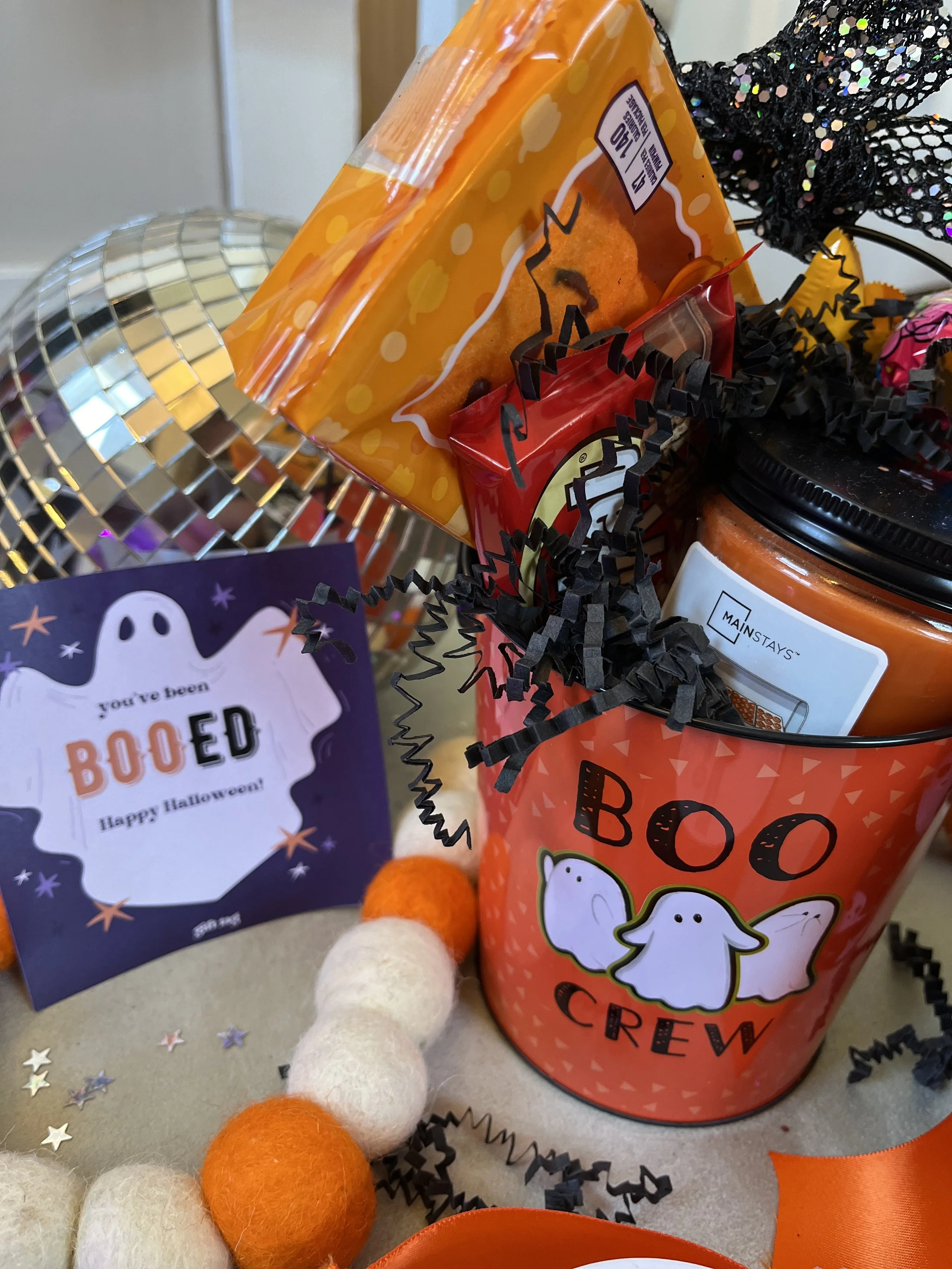 There’s an option to do “boo-ze bags” but I’m not sure where some of my colleagues stand and didn’t want to get tracked down by Janice in HR so alas, peanut M+M’s and a pumpkin candle would have to do the trick. I kid, there is no Janice.